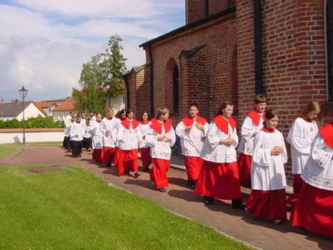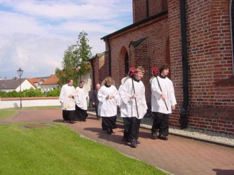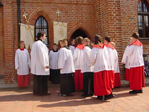 | Die Ministranten bereiten sich auf den Empfang vor |  |